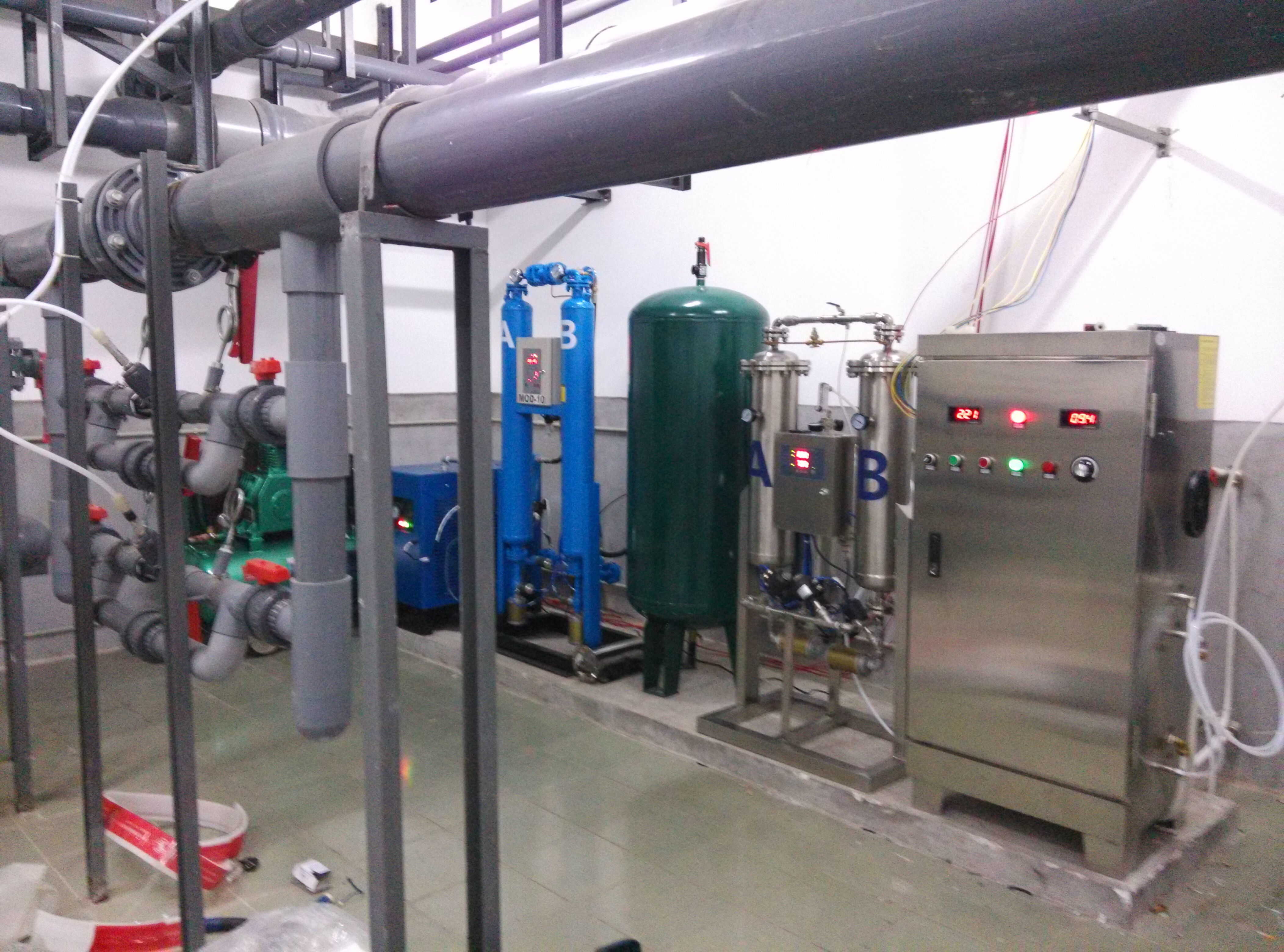 實(shí)際測(cè)試表明,當(dāng)臭氧投加量1.0mg/l時(shí),池中臭氧濃度最高不會(huì)超過0.1mg/l。有資料指出,游泳池水的臭氧濃度在0.15mg/l以下時(shí),對(duì)人體無害,實(shí)際情況也是如此。需要強(qiáng)調(diào)指出的是,毒理學(xué)試驗(yàn)表明,在相同劑量下,臭氧的毒性低于氯,如果說臭氧在此濃度下對(duì)人有害,那么,氯對(duì)人體的危害更大。